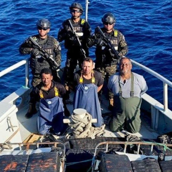 “Interceptamos una embarcación a 515 millas náuticas (954 kilómetros) al suroeste de la bocana El Cordoncillo, Estero de Jaltepeque, incautando 1,7 toneladas de cocaína, valoradas en 44,8 millones de dólares”.