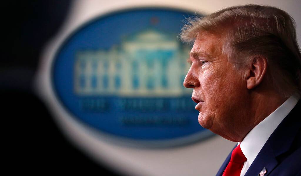 El presidente Donald Trump habla sobre el coronavirus en la sala de prensa James Brady de la Casa Blanca. Foto: AP
