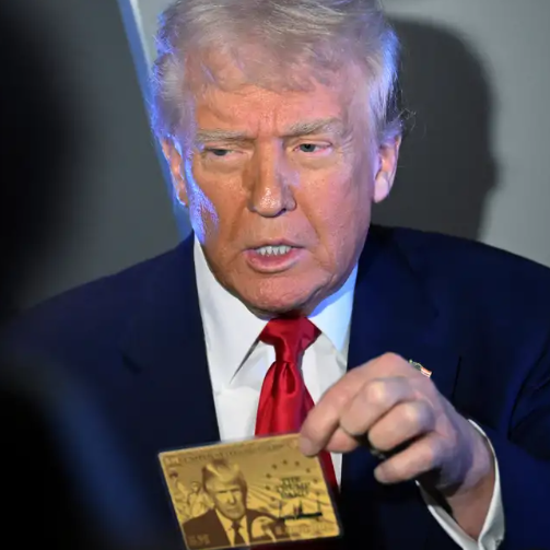 Trump presentó un prototipo de "visa de oro" (o golden card), con su imagen estampada. ( )