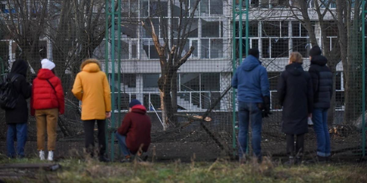 Ciudadanos ucranianos observan ayer 31 de diciembre los daños causados por los misiles rusos. ( )