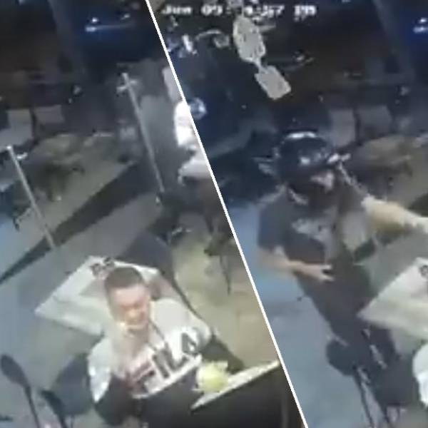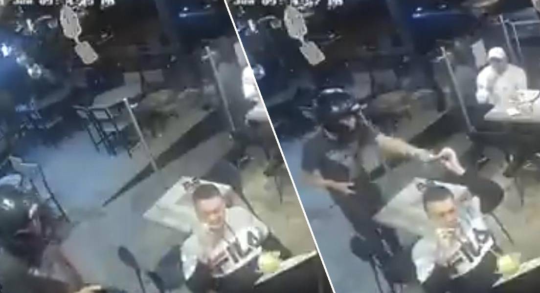 La despreocupada actitud del comensal fue registrada por una cámara de seguridad.