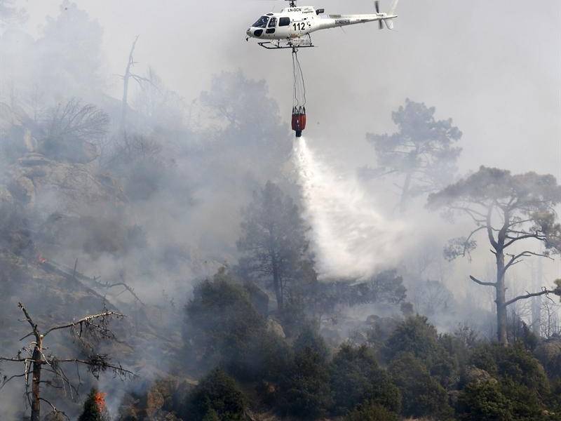 En la zona están desplegados más de trescientos especialistas de extinción, componentes de 34 retenes, cinco brigadas de refuerzo y diez vehículos autobomba, además de la Unidad Móvil de Meteorología y Transmisiones y la Unidad de Análisis y Seguimiento de Incendios Forestales.