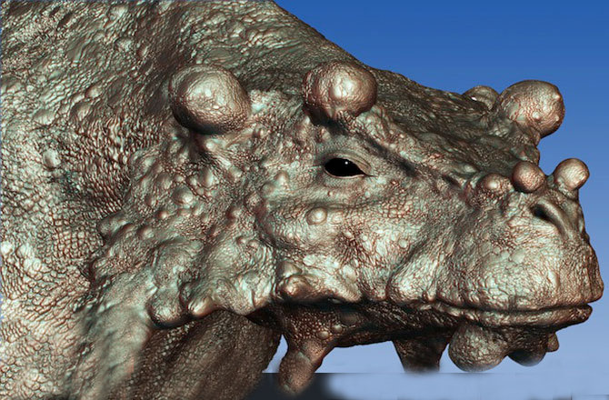 Un reptil muy raro, con protuberancias en su cara, deambuló el vasto y apartado desierto hace unos 260 millones de años.