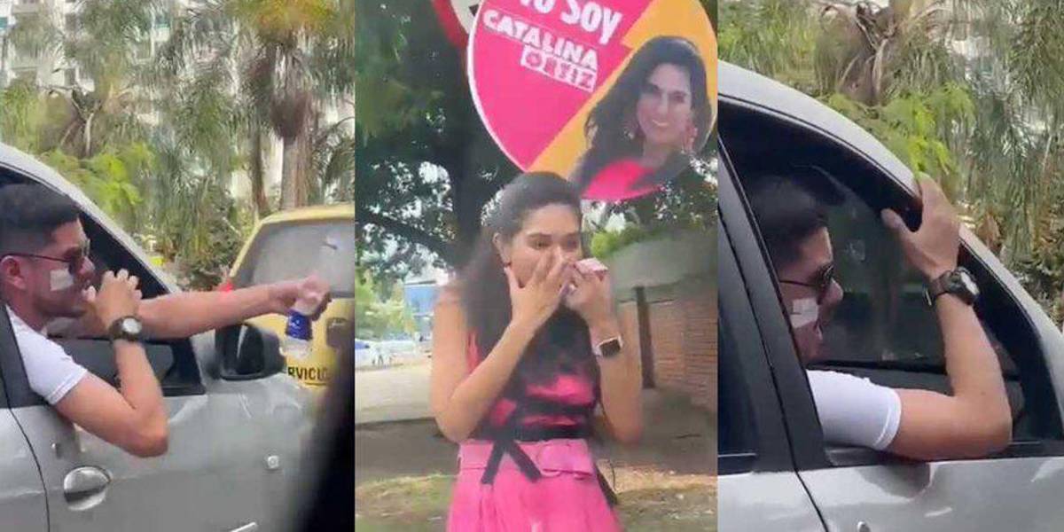 En el video, que se hizo viral en redes sociales, se ve como un hombre que va en un automóvil le hace comentarios misóginos y luego le arroja agua al rostro, lo que ocasionó críticas a la actitud del hombre y de apoyo a Ortiz.