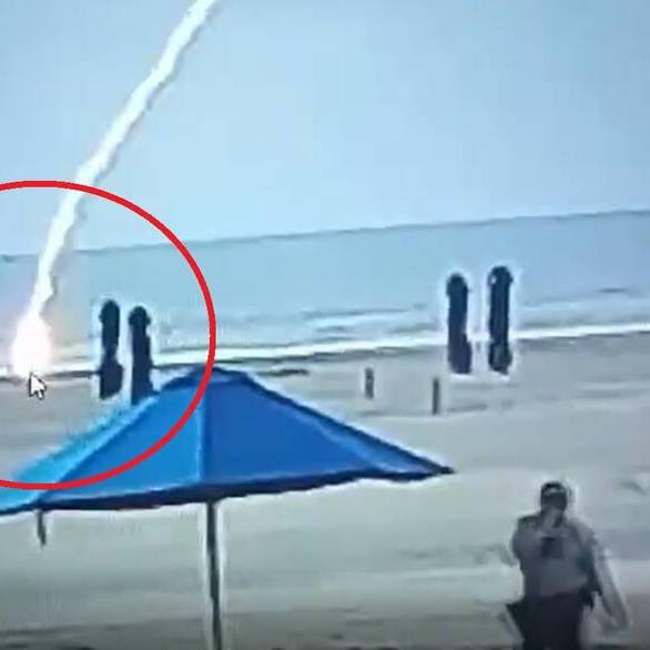 En las imágenes se ve a la mujer parada frente al mar, descalza y próxima al agua, cuando un rayo impacta directamente en su cabeza. También un hombre que pasaba junto a ella cae al suelo, pero logra recuperarse rápidamente del susto.