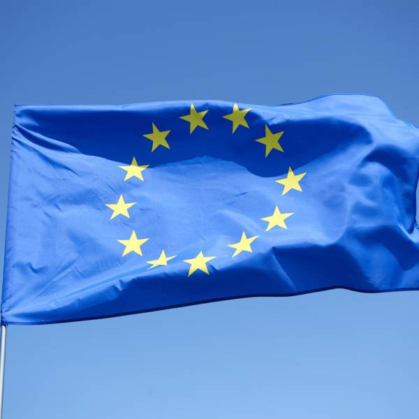 Bandera de la Unión Europea en Frankfurt, Alemania. ( )