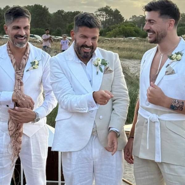 Esta relación marcó un antes y después en Uruguay porque tres hombres se dieron el "sí" en un acto simbólico. Si bien la legislación uruguaya no permite las uniones múltiples, estos novios tuvieron una pequeña ceremonia en el balneario ubicado en la ciudad de la Costa en Canelones.