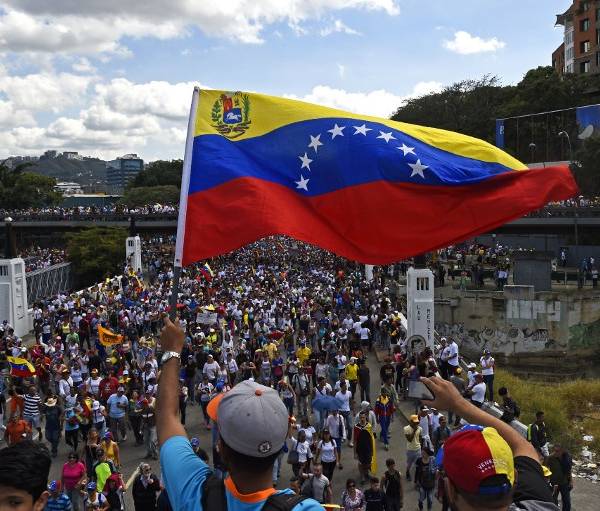 CARACAS, Venezuela.- Opositores al gobierno de Nicolás Maduro durante una movilización convocada por Juan Guaidó. Foto: AFP.