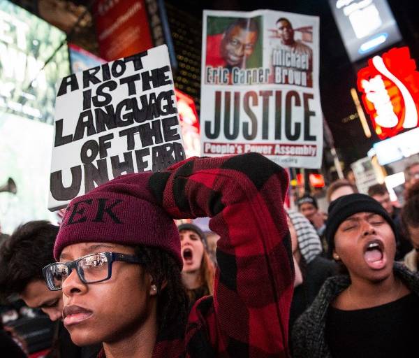 Cientos de manifestantes marcharon en diferentes movilizaciones en la Gran Manzana para denunciar la decisión de un gran jurado de Misuri, el lunes, de no juzgar al policía blanco que mató a Michael Brown el 9 de agosto durante un polémico arresto.