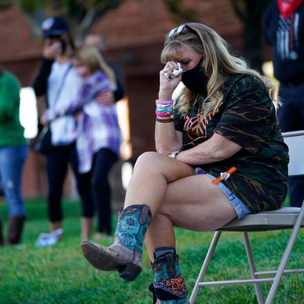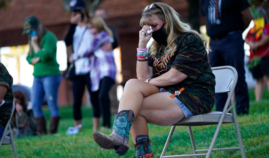 Una mujer en la ceremonia de recordación, en el tercer aniversario de la masacre de Las Vegas. Foto: AP.
