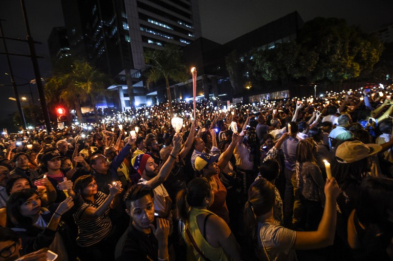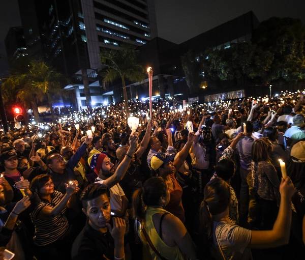 Con velas, linternas o con la luz de sus teléfonos celulares, miles de opositores se reunieron este miércoles 17 de mayo de 2017 en la noche de Caracas para honrar a los 43 fallecidos en siete semanas de protestas contra el gobierno de Nicolás Maduro.