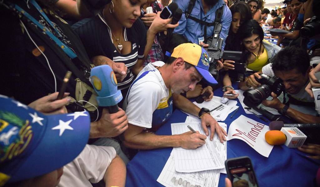 "No hay que esperar los 30 días (...) El revocatorio es nuestro y esa es la vía para alcanzar el cambio político que necesita el país para salir de esta situación", dijo el líder opositor y ex candidato presidencial, Henrique Capriles.