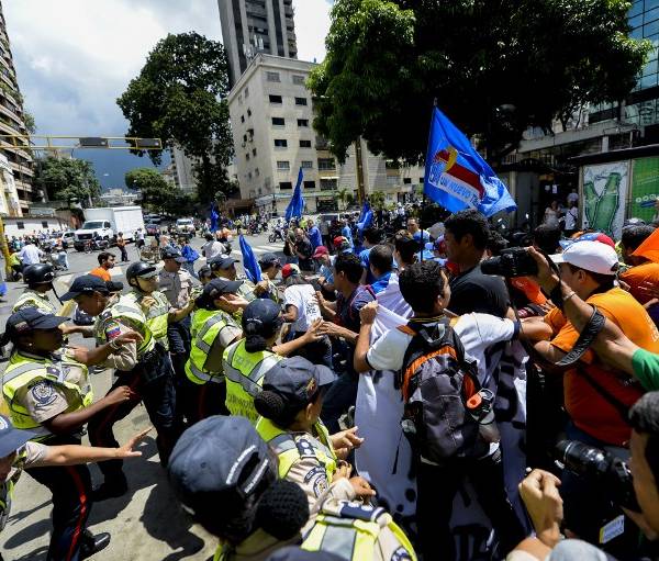 La oposición venezolana denunció que dos manifestantes fueron baleados durante una protesta este viernes 16 de septiembre de 2016 que exigió un referendo revocatorio contra el presidente Nicolás Maduro, y atribuyó el hecho a grupos armados vinculados con el Gobierno.