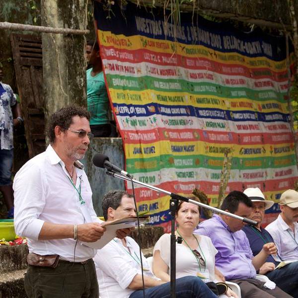 El proceso de reconciliación en el empobrecido municipio selvático del oeste colombiano, inició en diciembre de 2014, cuando Palacios viajó a Cuba para dar su testimonio frente a los negociadores de ambas partes.