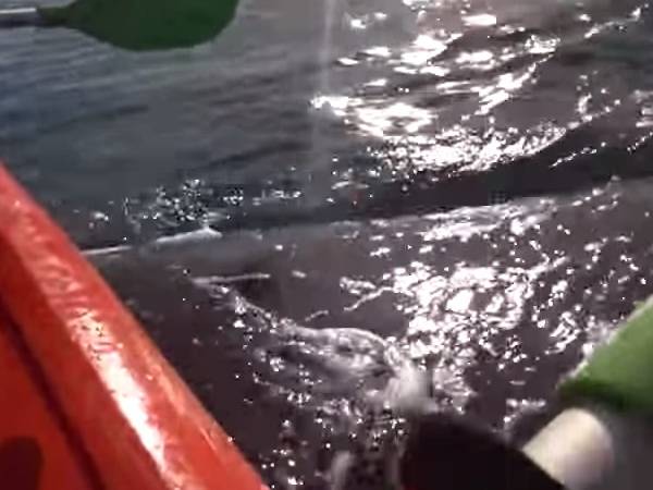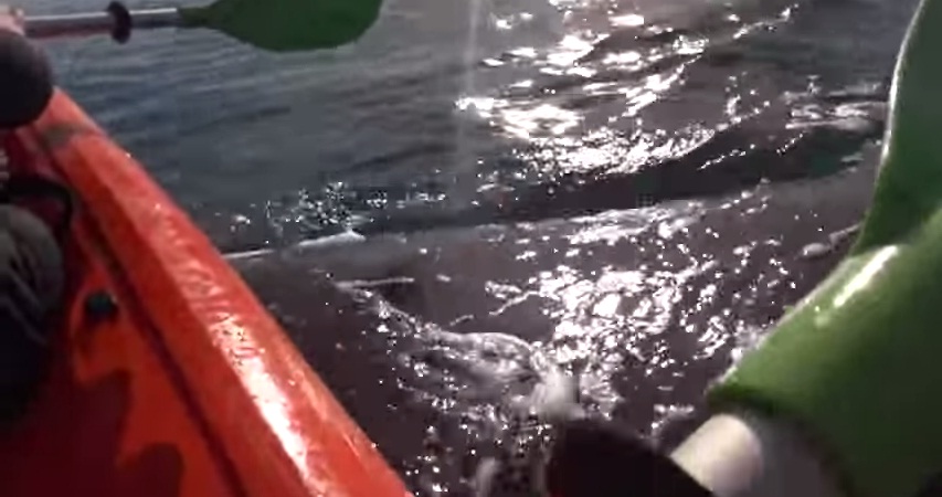 Una usuaria de la red social YouTube, identificada como “gisela6652” subió un video en el que se puede observar a dos kayakistas navegando muy cerca de un grupo de ballenas, a tal punto que una de ellas termina levantando de manera peligrosa la pequeña embarcación.