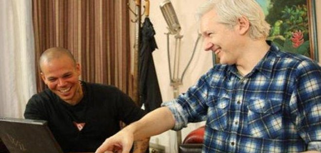 La canción, cuya letra asegura que "una noticia mal contada es un asalto a mano armada", fue compuesta por el cantante René Pérez, "Residente", junto a Assange, con el que se reunió en la embajada de Ecuador en Londres, donde el fundador de WikiLeaks está refugiado.