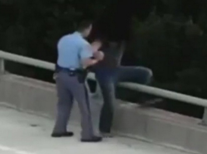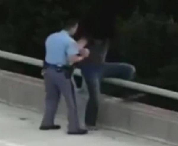 EE.UU., Carolina del Norte.- Un policía logró evitar que un hombre saltara de un puente con la idea de matarse. Foto: captura de video