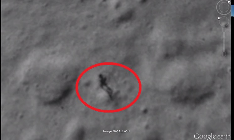 En el servicio de Google, que muestra imágenes satelitales de la Luna, Google Moon, se observó una figura humanoide que parece estar caminando sobre la superficie de nuestro satélite natural.
