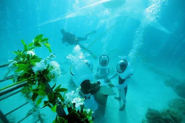 Un casamiento submarino dura unos 20 minutos y cuesta unos 3.300 dólares.