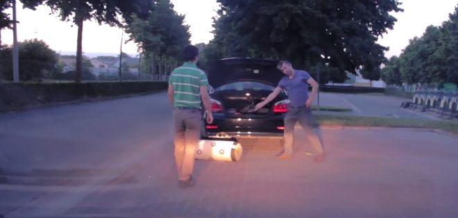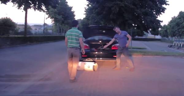Cuando ambos salen de sus coches parece que hasta el aire se hace agresivo y la pelea es inevitable. En el momento en que uno de los hombres abre el maletero de su coche parece que la situación se va a poner aún más fea, pero, de repente, saca… un saco de boxeo.