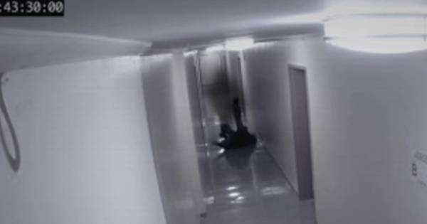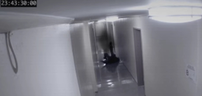 En la secuencia de imágenes se observa cómo el aparente espectro empuja a un hombre el suelo y luego lo arrastra a lo largo de un pasillo iluminado.