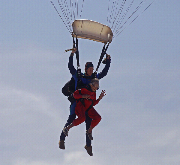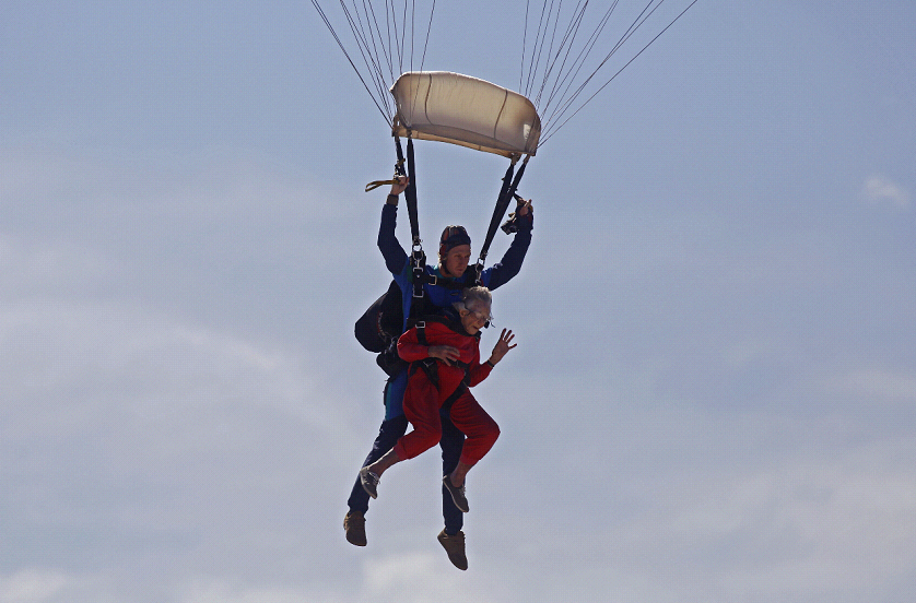 ¿Qué te gustaría hacer en tu cumpleaños? Tal vez pocas personas piensan como la sudafricana Georgina Harwood, quien decidió festejar sus 100 años de edad nada menos que con un salto con paracaídas.