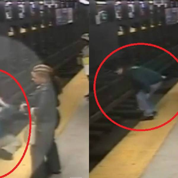 El video, grabado por las cámaras de seguridad, revela cómo Charles Collins se lanza a los rieles y salva a Alfred McNamee, quien cayó a las vías por un despiste después de que había caminado por un extremo de la plataforma.