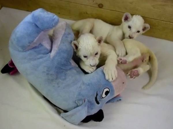 (VIDEO) El tierno nacimiento de tres leones blancos a Belgrado