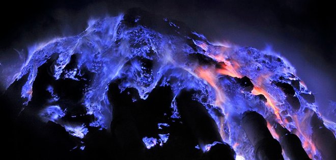 El fotógrafo francés Olivier Grunewald filmó un documental sobre el particular volcán de Indonesia, donde se puede ver el particular efecto de sus llamas azules.