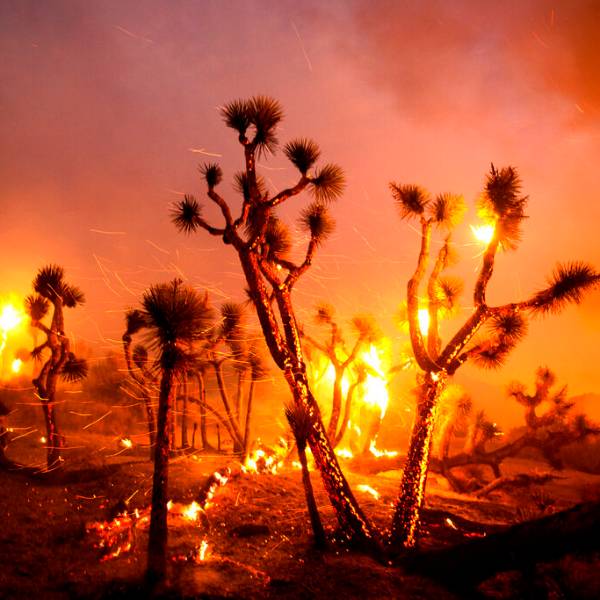 El viento azota las brasas de los árboles de Josué en Juniper Hills, California. Fotos: AP