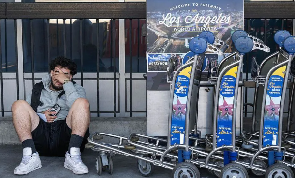 Un hombre quien fue informado que su vuelo había sido cancelado( )