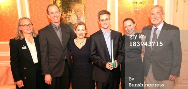 Se trata de la primera foto de Snowden, desde que salió el pasado agosto del aeropuerto de Moscú, donde estuvo cinco semanas, y le acompañan cuatro supuestos exinformantes de las actividades ilegales de la CIA, el NSA, el Ministerio de Justicia y el FBI estadounidenses, además de la colaboradora de WikiLeaks, Sara Harrison.