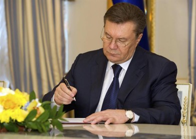El presidente de Ucrania, Víktor Yanukóvich, y los tres líderes de la oposición parlamentaria firmaron hoy el acuerdo para el arreglo de la crisis después de tres meses de protestas antigubernamentales atizadas por violentos disturbios.