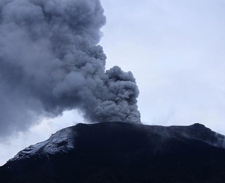 Según el Instituto Geofísico, desde el fin de semana se registra la caída de piedras por los costados del coloso y se han producido explosiones de ceniza con vapor.
