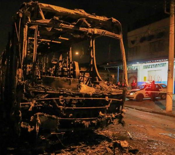 En la Avenida Yervant Kissajikian, en la región suroriental de la capital paulista, un autobús fue quemado, mientras que en el barrio Jardim Presidente Dutra, en el vecino municipio de Guarulhos, también en la región metropolitana, otro más fue atacado con fuego.