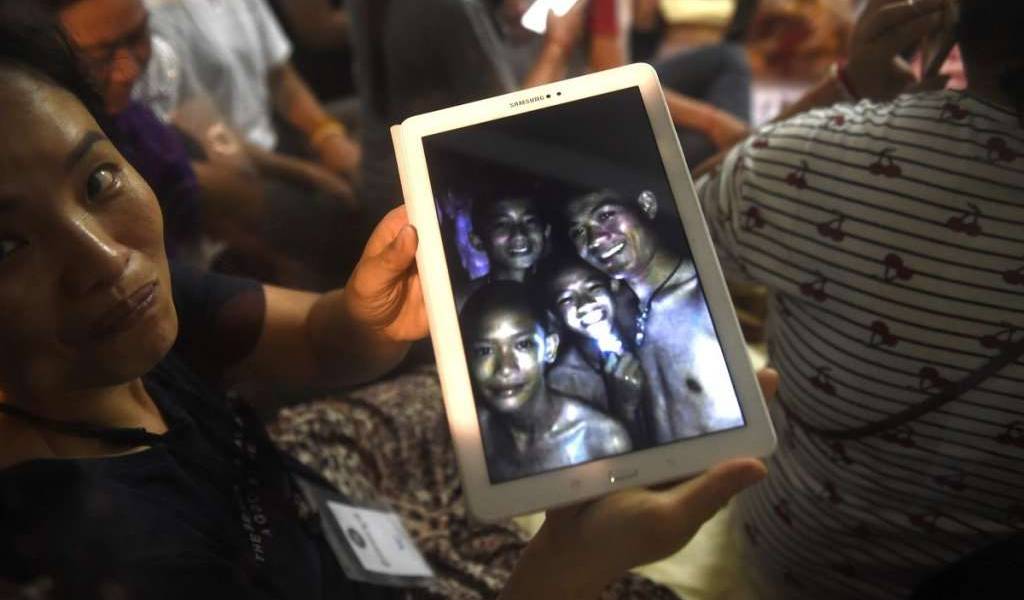 13 miembros de un equipo de fútbol juvenil que pasaron 17 días atrapados en una cueva inundada en Tailandia. Foto: AFP