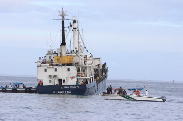 El buque carguero 'Floreana' tenía 1.300 galones de combustible. Fotos: Gobierno de Galápagos. -