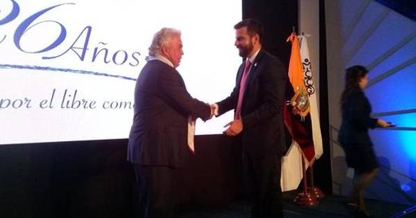 Más temprano, en el evento se entregaron tres condecoraciones. La del mérito al emprendedor fue para Gloria Saltos, la de presidente fundador recayó en el anterior presidente del gremio Eduardo Peña y la presea "Centenario", fue entregada al presidente del directorio del Banco Guayaquil, Danilo Carrera Drouet, por su trayectoria.