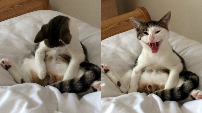 "Fue impagable. Tardó una hora más o menos en darse cuenta de lo que había pasado. Se miró abajo y se percató de que faltaba algo y lanzó un alarido increíble", explicó Reed, de 58 años. Él y su pareja castraron al felino por salud, pero es visible que el pobre gato no quedó feliz con esa decisión.