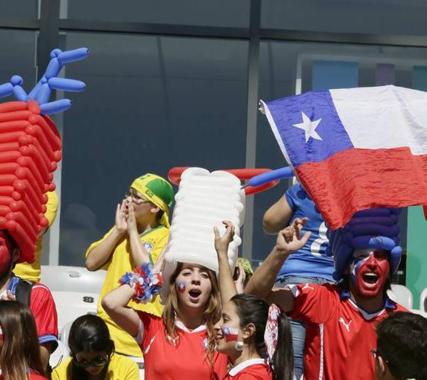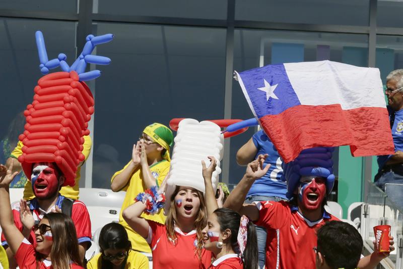 Brasileños y chilenos tiñeron de color y ambiente de fiesta los alrededores del estadio Mineirao de Belo Horizonte para el partido de octavos de final del Mundial.