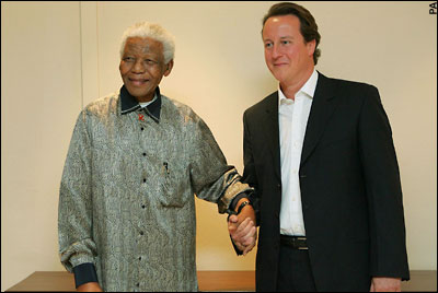 "Una gran luz se ha ido de nuestro mundo. Nelson Mandela fue un héroe de nuestro tiempo. He pedido que la bandera en el número 10 de Downing Street ondee a media asta", escrió Cameron en Twitter.
