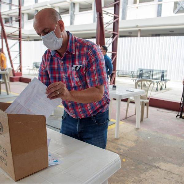 Un hombre participa en el simulacro electoral de las Elecciones Generales 2021 de Ecuador,en Guayaquil. EFE