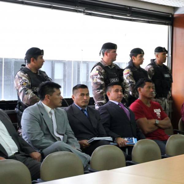 Tras 11 días de audiencia este jueves los jueces decidieron declarar culpables de asesinato a Erick Salinas, el exagente que aparece en la foto captada por diario El Universo y a cuatro policías del grupo de intervención y rescate GIR. Los 5 recibieron una pena de 16 años de reclusión mayor especial. Uno de los sentenciados es el capitán Douglas Yépez.