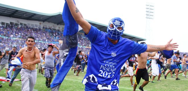 Los hinchas de Emelec tras la finalización del partido con Manta.