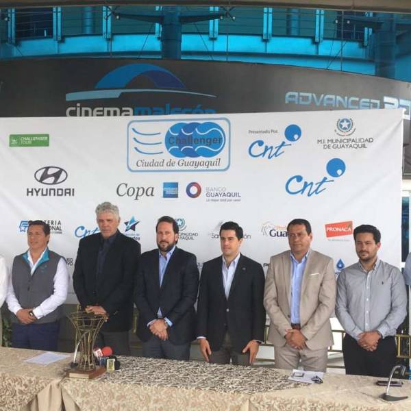En la rueda de prensa estuvieron presentes Luis Adrián Morejón, organizador del evento, Andrés Gómez, director de la competencia, Roberto Quiroz, tenista ecuatoriano que jugará el Challenger, y representantes de las marcas auspiciantes del certamen.
