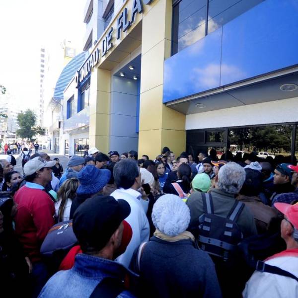 QUITO, Ecuador.- Los ciudadanos cubanos se mantienen en los exteriores de la Unidad de Flagrancia a la espera de una resolución sobre su permanencia en el país. Foto: API