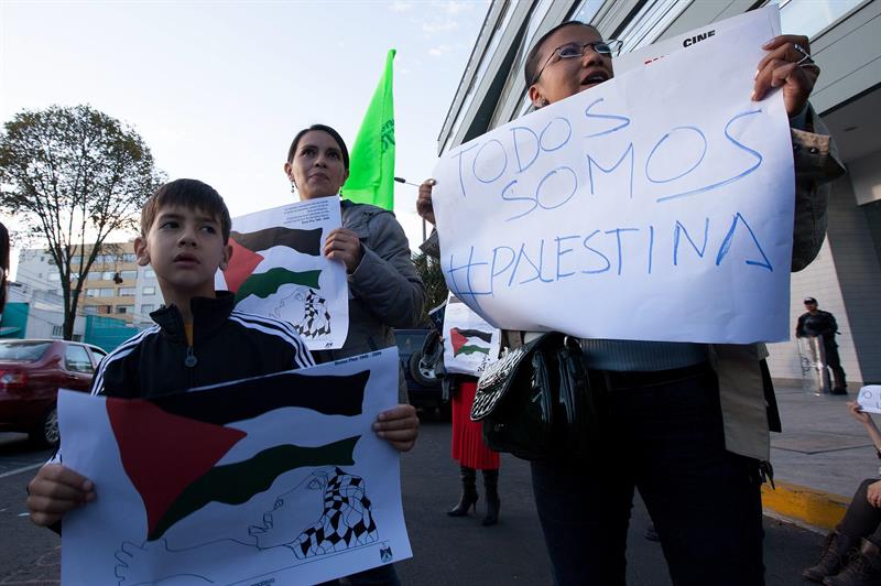 La activista de los derechos humanos Martha Vargas, dijo a Efe que la concentración se organizó por medio de las redes sociales, para pedir el alto el fuego y el reconocimiento del Estado palestino.