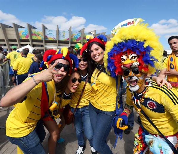 La pasión de los colombianos por su selección se nota en las calles de pueblos y ciudades, donde miles de personas visten hoy la camiseta amarilla o la roja del segundo uniforme, muchas casas y edificios han izado el tricolor nacional como si de una fiesta patria se tratase y vehículos circulan con banderas en las ventanillas.