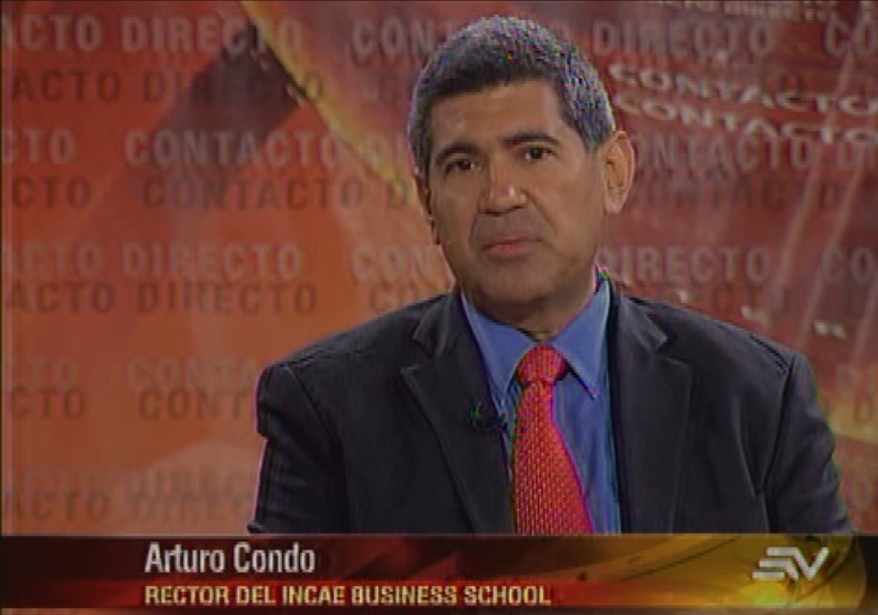 El guayaquileño Arturo Condo, rector del Incae Bussines School de San José de Costa Rica (una de las 10 mejores escuelas de administración de negocios en el mundo), dialogó en el programa Contacto Directo sobre la transición de una economía petrolera a una economía no petrolera, a propósito de la baja de 79 a 71 dólares del precio del barril de petróleo, situación que afectaría el presupuesto general del Estado ecuatoriano.