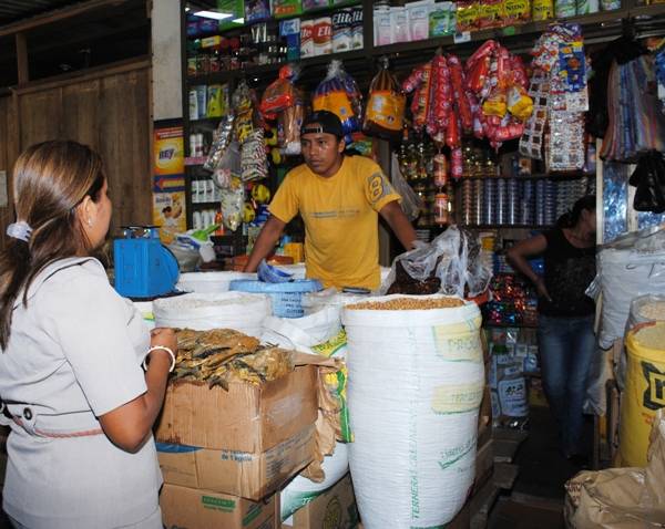 Personal de la Intendencia de Policía llegó hasta el sector para verificar que los precios de los 16 productos de la canasta familiar fueran respetados por los comerciantes.